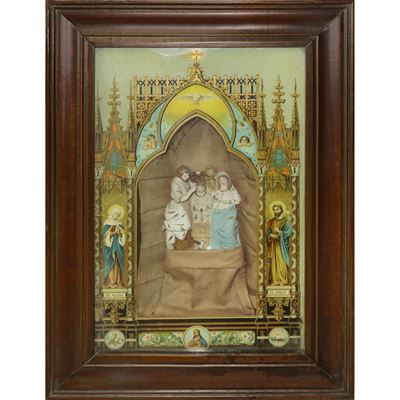 Bacheca con San Giuseppe e Bambino Gesù in cera con reliquie