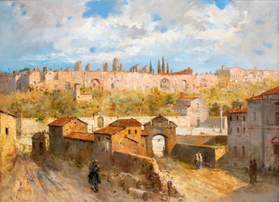 Veduta di Roma con le Terme di Caracalla e la Basilica dei Santi Nereo e Achilleo