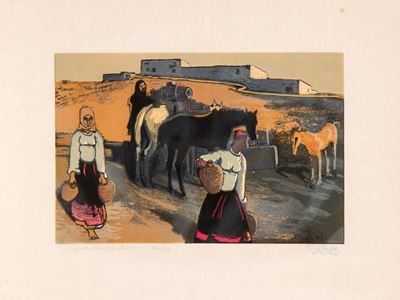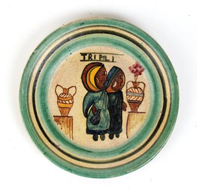 Piatto fiera di Tripoli con donne ed anfore
