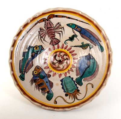 Grande piatto con decorazione di pesci e molluschi