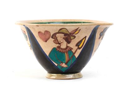 Coppa con decorazione di fante di cuori e regina di picche