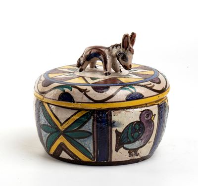 Scatola con coperchio ad impugnatura con elefante