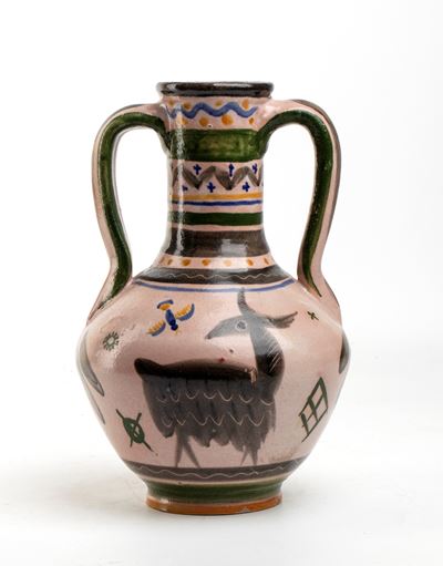 Vaso con decorazioni di caprette