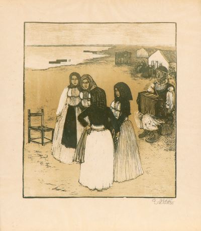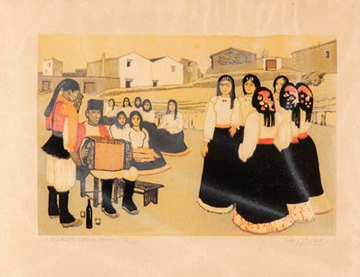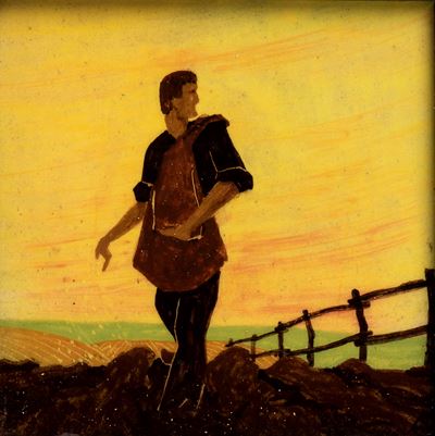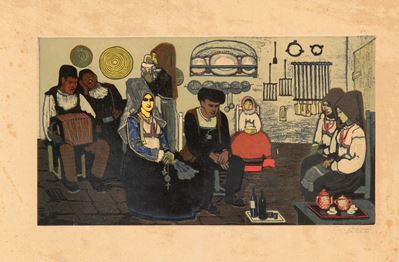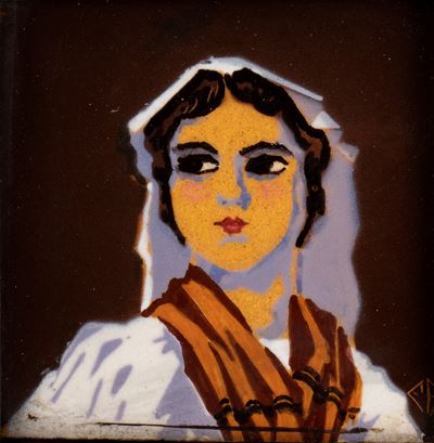 Mattonella con decorazione di personaggi in costumi sardi