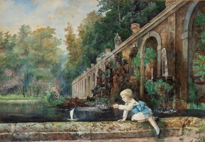 Lotto di due quadri raffiguranti coppie di bambini