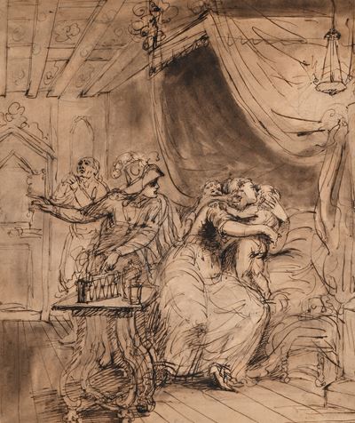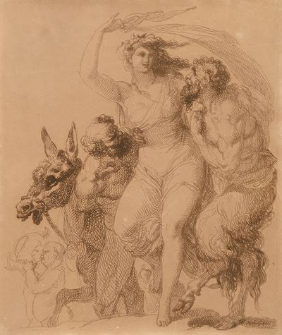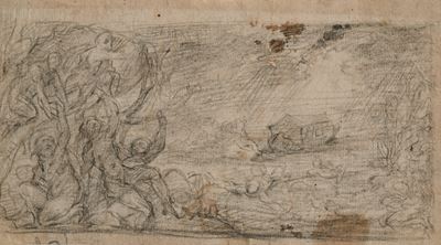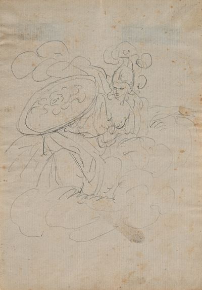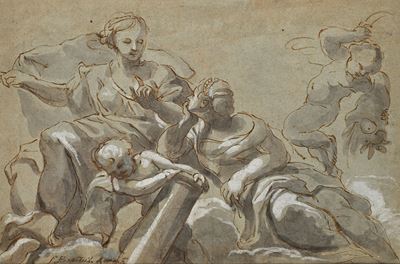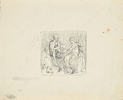 Recto: Studio di testa di Minerva, putto e figura femminile - Verso: Schizzo con Banchetto di Cle...