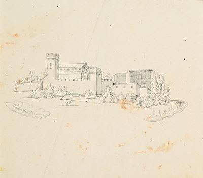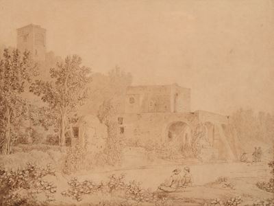 Studio di paesaggio fluviale con ruderi