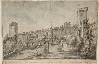 Rovine del Palazzo dei Cesari nel Palatino e Terme di Caracalla (dalla Villa Palatina)