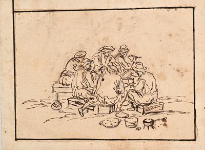 Verso: Scena di osteria - Recto: Pranzo all'osteria
