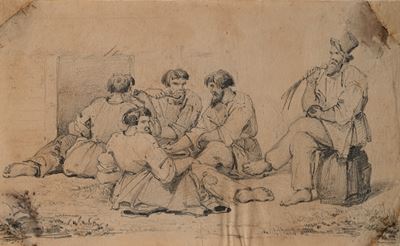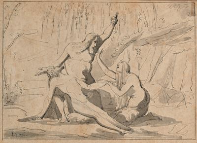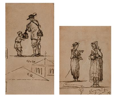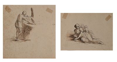 Coppia di studi un uomo che falcia e Studio per Carità