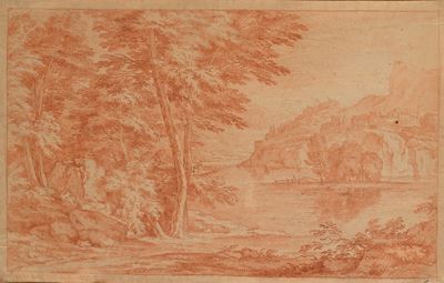 Paesaggio fluviale con tempio classico