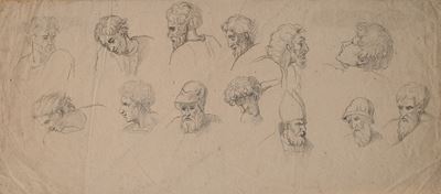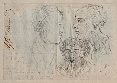 Recto: Studi di volti, Verso: Studio di due profili femminili