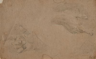 Recto: Studio di mano - Verso: studio di panneggio