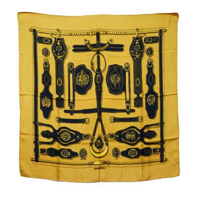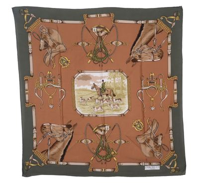Foulard In Seta Con Motivo DI Gioiello Al Centro Su Fondo Beige