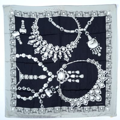 Foulard In Seta Con Motivo DI Gioielli Bianchi Su Fondo Nero