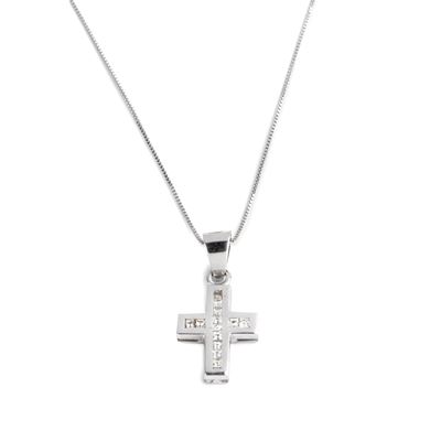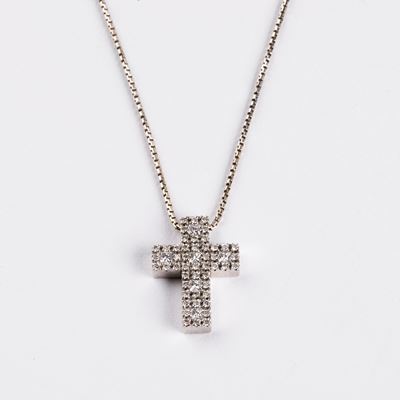 COLLANA E PENDENTE A FORMA DI CROCE IN ORO BIANCO 18KT E DIAMANTI