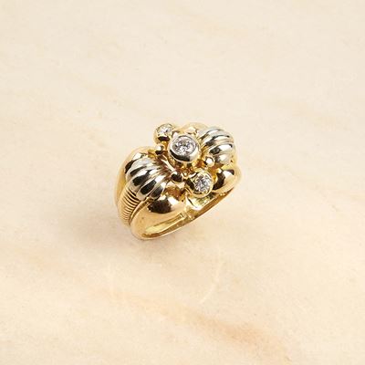 ANELLO IN ORO GIALLO, ORO BIANCO 18KT E DIAMANTI