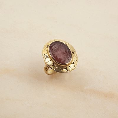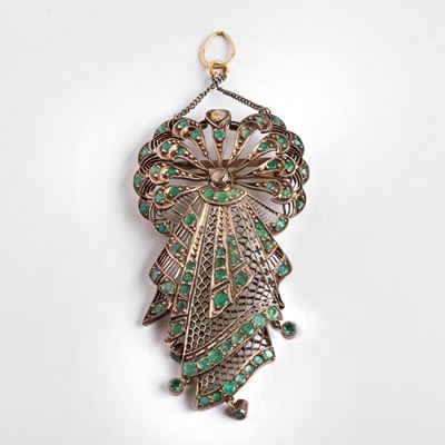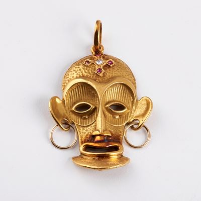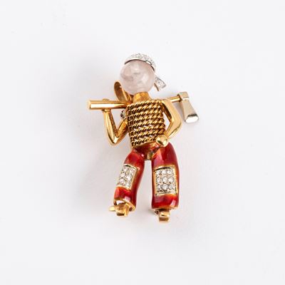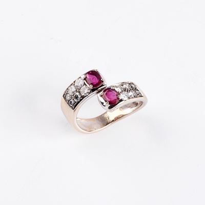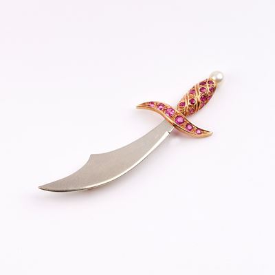 SPILLA IN ORO GIALLO, ORO BIANCO 18KT, RUBINI E PERLA