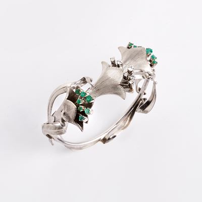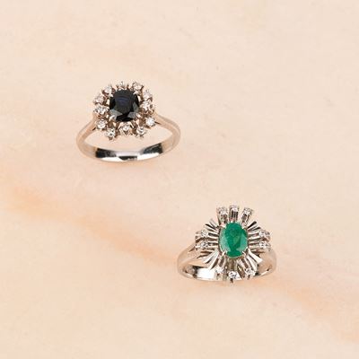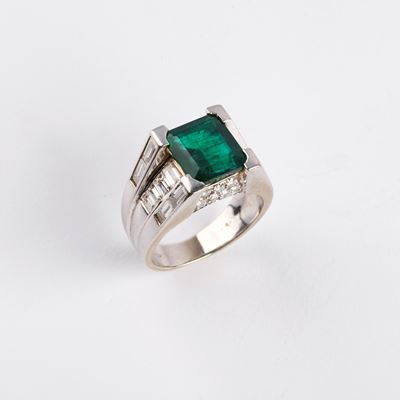 ANELLO IN ORO BIANCO 18KT, DIAMANTI E SMERALDO
