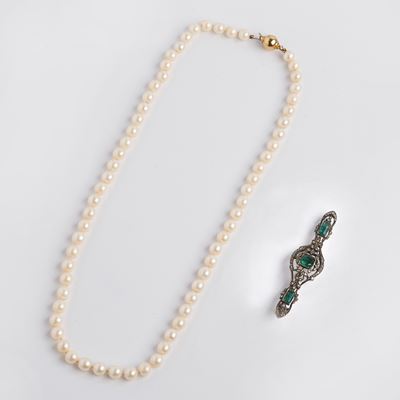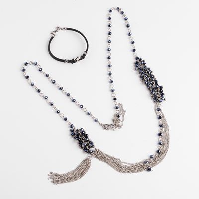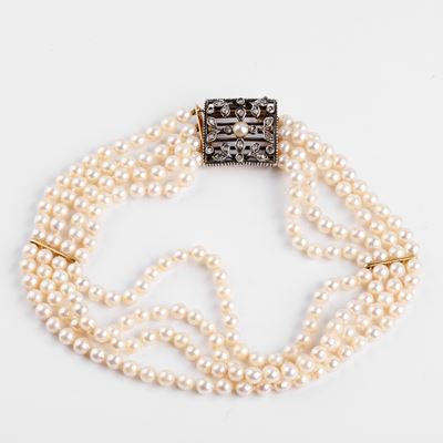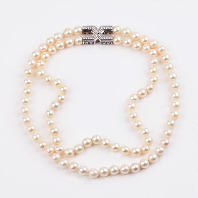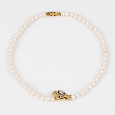 COLLANA IN ORO BIANCO 18KT, DIAMANTI E PERLE