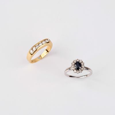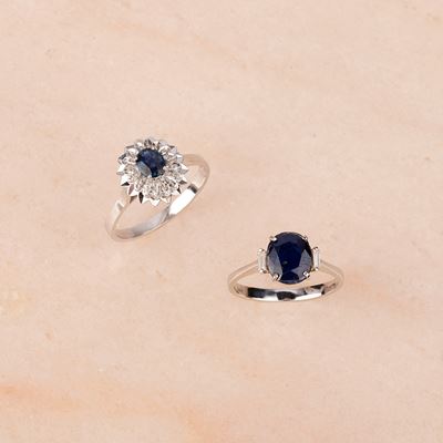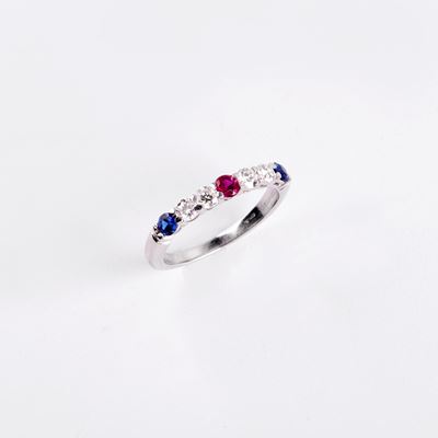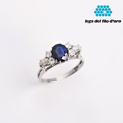 ANELLO IN ORO BIANCO 18KT , DIAMANTI E ZAFFIRO