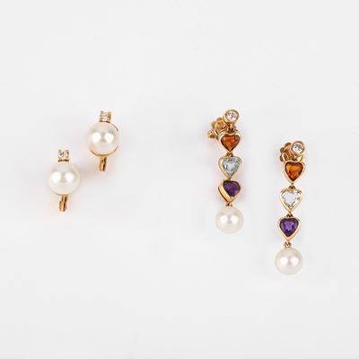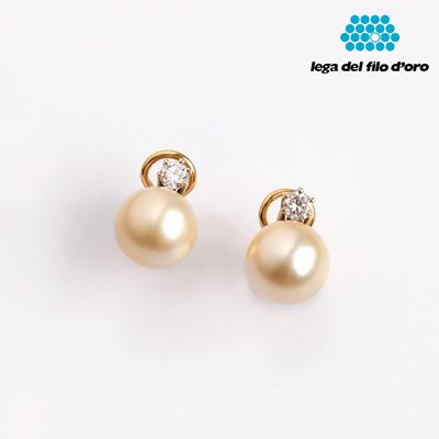 PAIO DI ORECCHINI IN ORO GIALLO 18KT DIAMANTI E PERLE