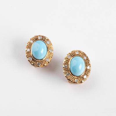 PAIO DI ORECCHINI IN ORO 18KT DIAMANTI E TURCHESE