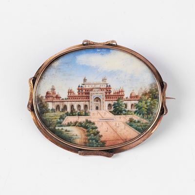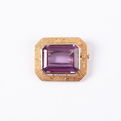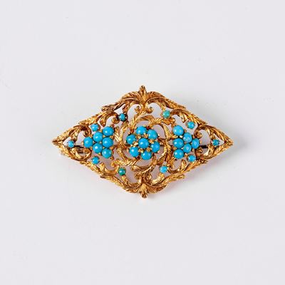 SPILLA IN ORO GIALLO 18 KT, RUBINI E DIAMANTE