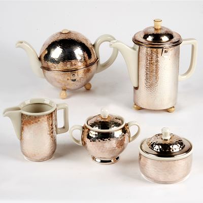 CAFFETTIERA, TEIERA, LATTIERA E DUE ZUCCHERIERE, SEC. XX