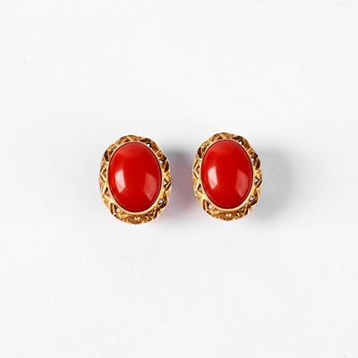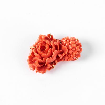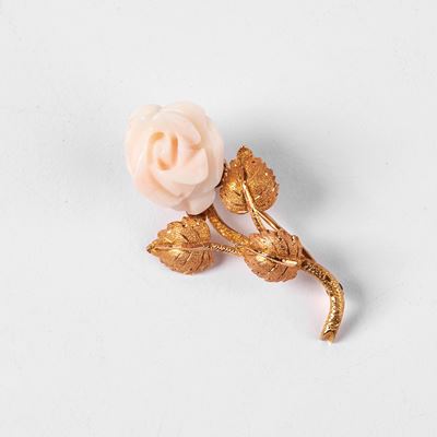SPILLA IN ORO GIALLO 18 KT E CORALLO