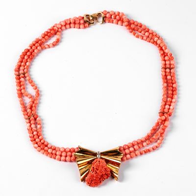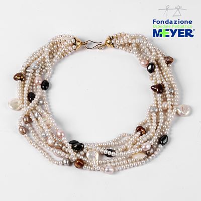 COLLANA MULTIFILO DI PERLE, TURCHESE E ORO GIALLO 18 KT