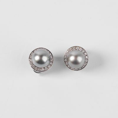 PAIO DI ORECCHINI IN ORO BIANCO 18 KT, DIAMANTI E PERLE