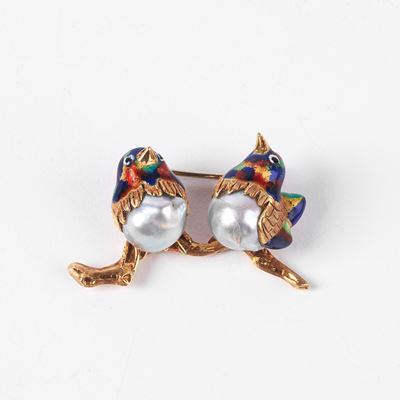 SPILLA IN ORO GIALLO 18 KT E PERLE