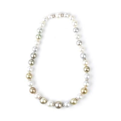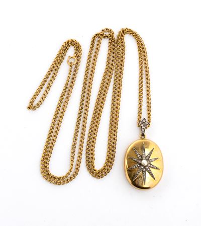Girocollo con portafoto in oro, argento, perle e diamanti