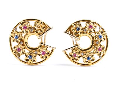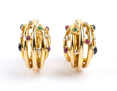 Paio di orecchini in oro con diamanti e spinelli