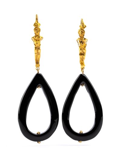 Paio di orecchini in oro giallo ed onice