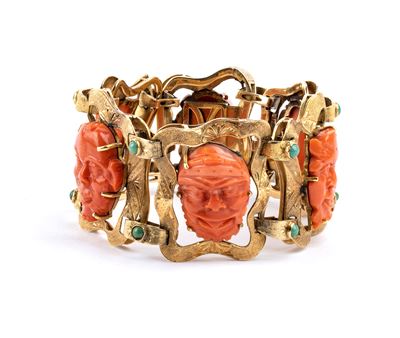 Bracciale in oro, turchesi e corallo Cerasuolo