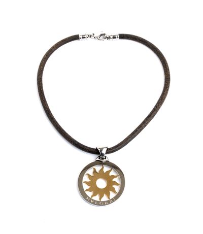 Collezione Tondo: girocollo in cuoio con pendente in acciaio ed oro