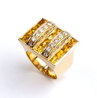 Anello in oro, diamanti e rubini