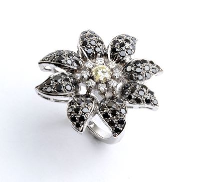 Anello fiore in oro smeraldo e diamanti