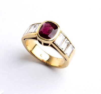 Anello in oro con diamanti e rubini