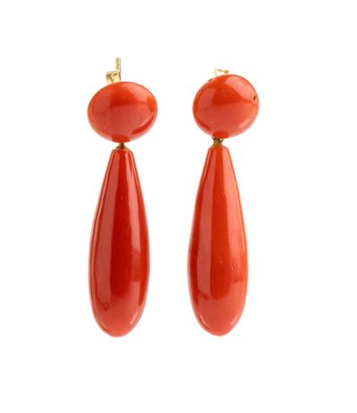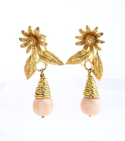 Paio di orecchini pendenti in oro e corallo Cerasuolo