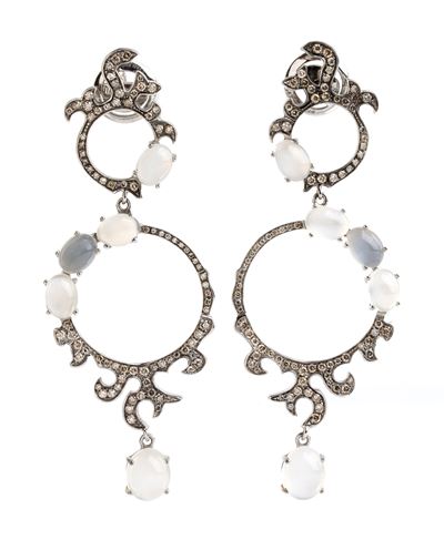 Paio di orecchini in oro con diamanti e quarzi