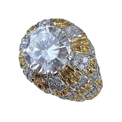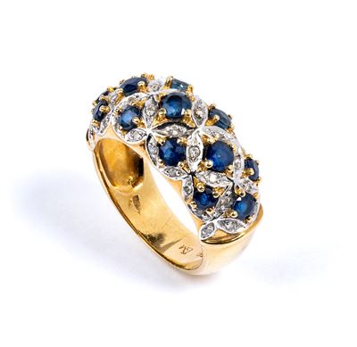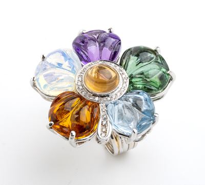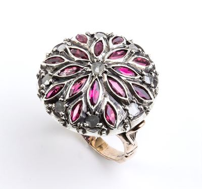 Anello a fiore in oro diamanti e corallo Mediterraneo
