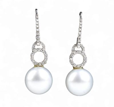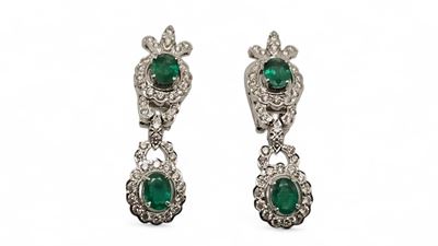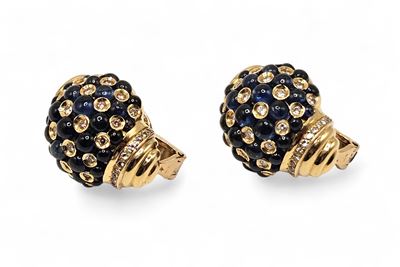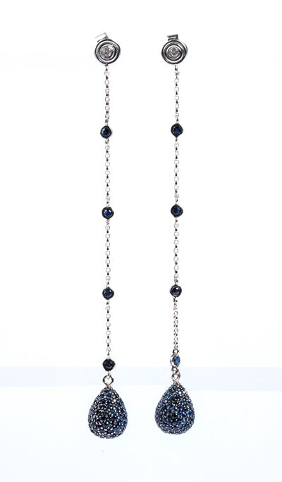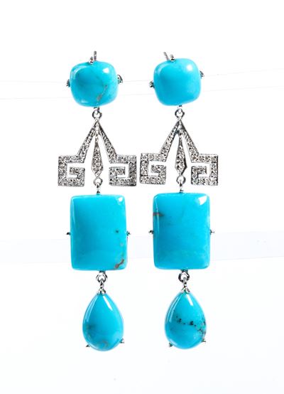 Paio di orecchini pendenti in oro con turchese e diamanti