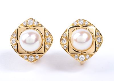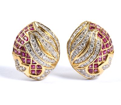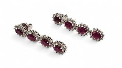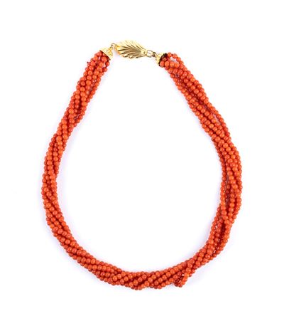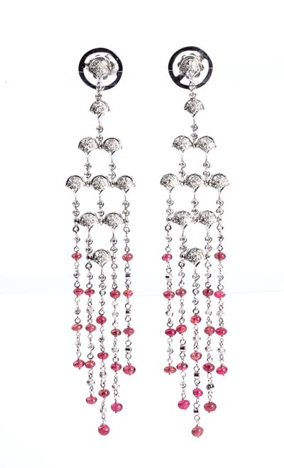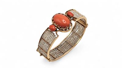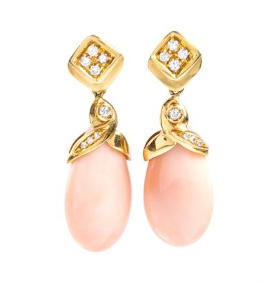 Paio di orecchini pendenti in oro con corallo cerasuolo e diamanti
