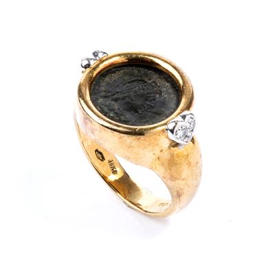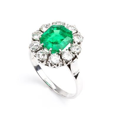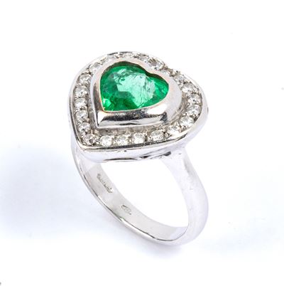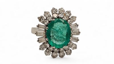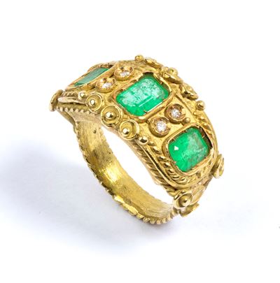 Anello in oro in stile archeologico con smeraldi e diamanti
