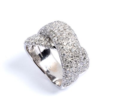 Orecchini in oro a cerchio con nastro in pave di diamanti