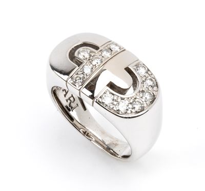 Modello Parentesi: anello a fascia in oro con diamanti.