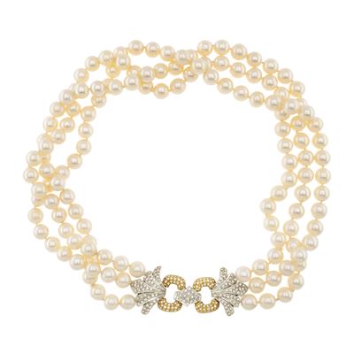 Collana a tre fili di perle coltivate con chiusura centrale